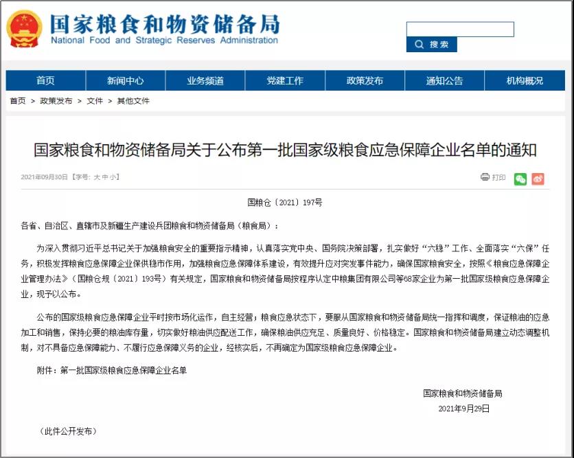 有效提升應(yīng)對突發(fā)事件能力,確保國家糧食安全,按照《糧食應(yīng)急保障企業(yè)管理辦法》(國糧倉規(guī)〔2021〕193號)有關(guān)規(guī)定,
